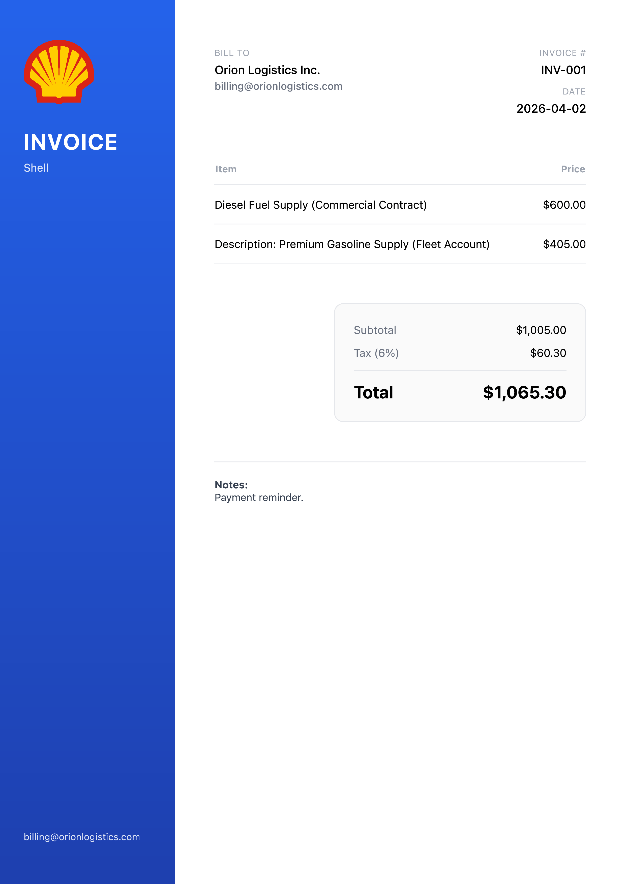 Fill out your invoice details and download instantly — no design skills required.